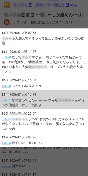 出勤を確認して、そのまま掲示板の口コミスレへ